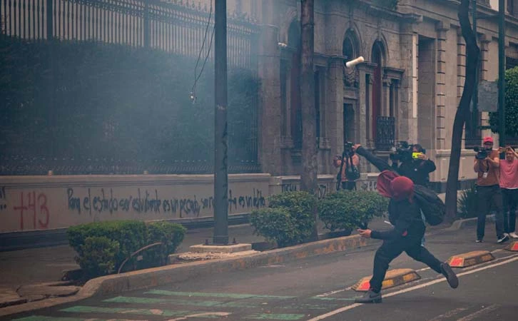 Normalistas del estado de Guerrero se presentaron en las inmediaciones de la Secretaría de Gobernación (Segob), ubicada en la colonia Juárez de la alcaldía Cuauhtémoc, donde lanzaron petardos de fabricación casera, cuyas detonaciones causaron daños a la estructura del edificio y rompieron cristales, lo que llevó a la evacuación de personal por puertas alternas.