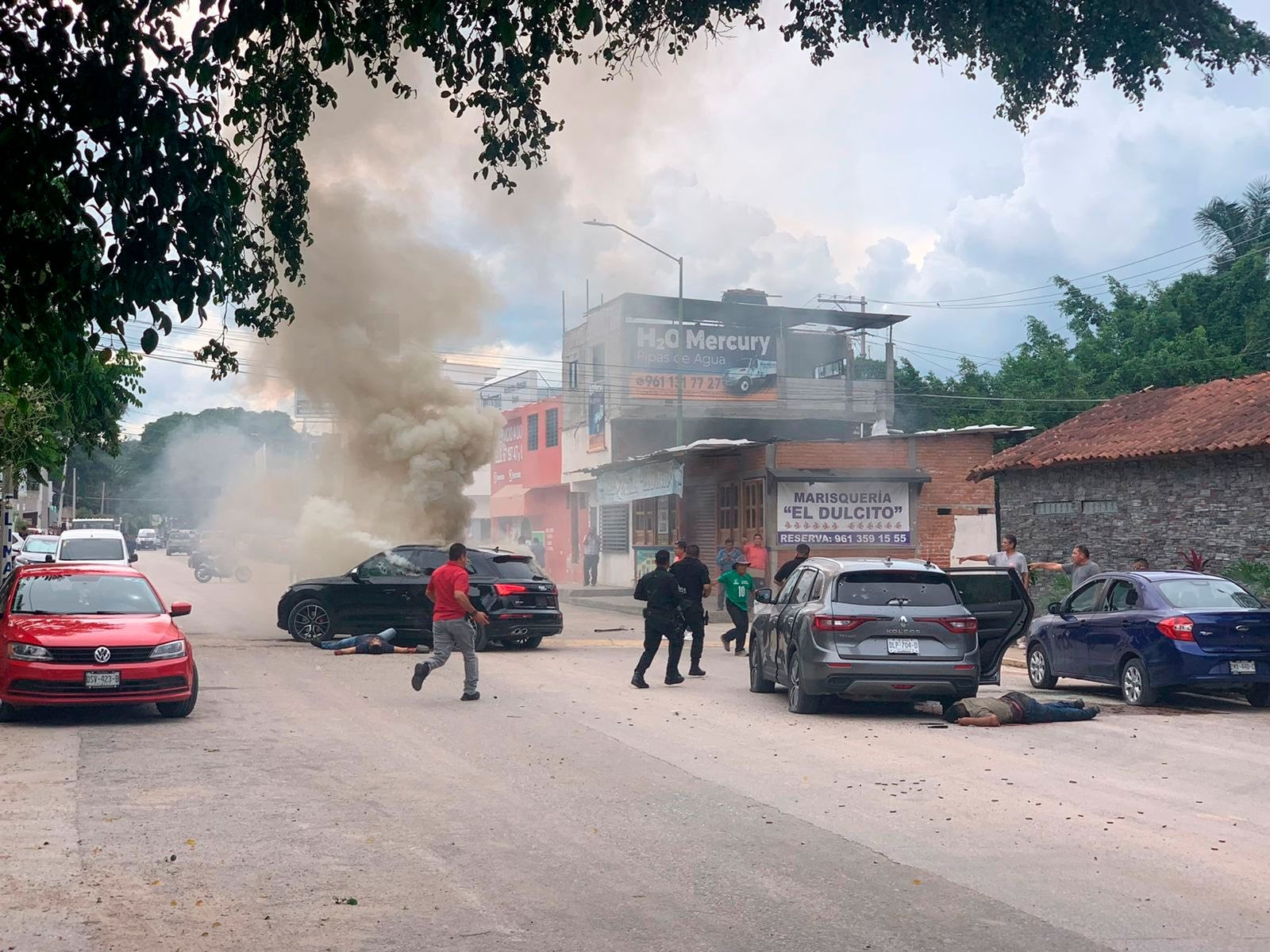En redes sociales circulan videos y fotografías del suceso, donde se deja ver que el enfrentamiento se dio a plena luz del día, así como personas sin vida, víctimas de la balacera, y la policía del estado viendo lo ocurrido. En los videos también se observa a los chiapanecos conmocionados por lo ocurrido.