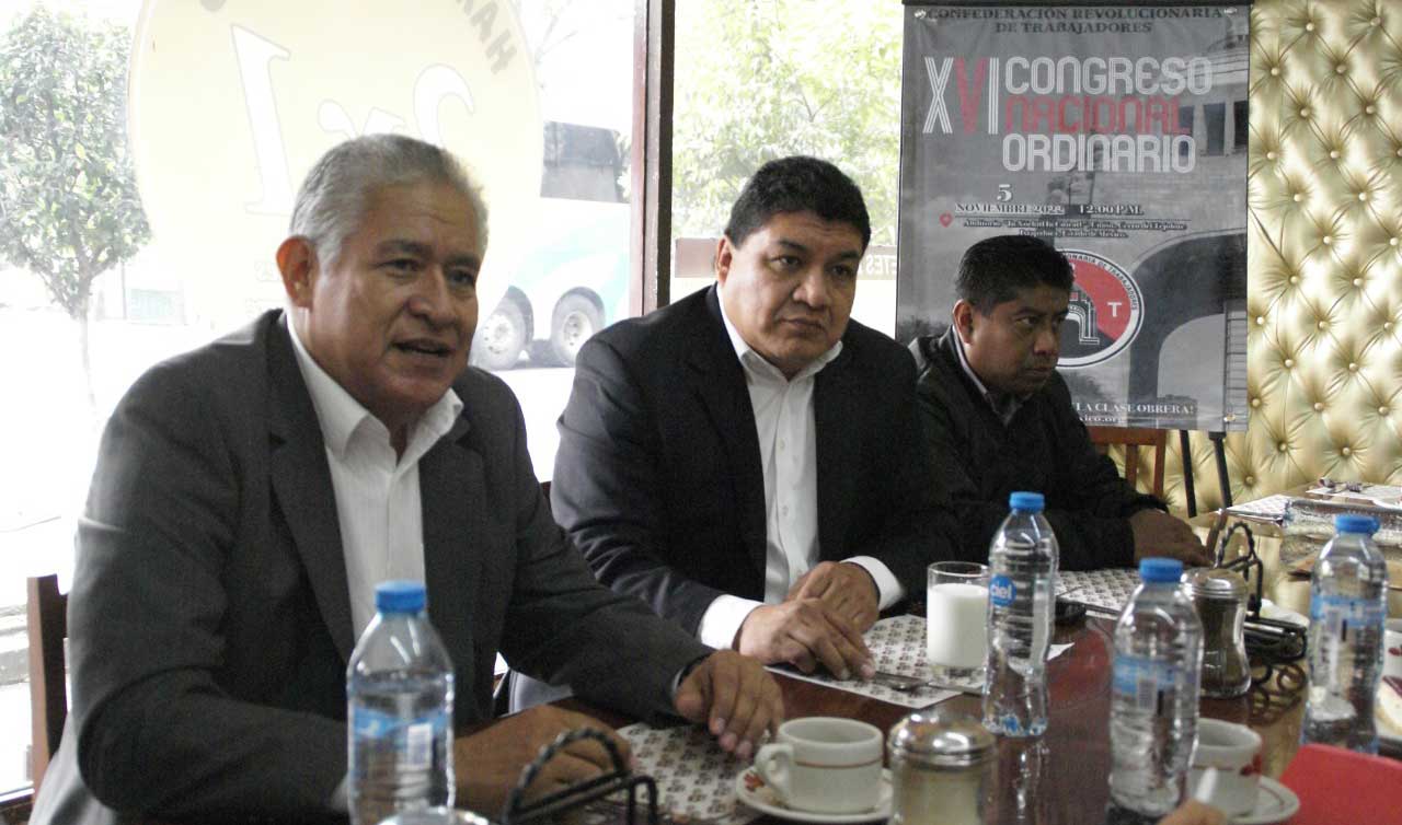 Así, con la realización de “nuestro XVI Congreso Nacional Ordinario, que habrá de celebrarse este próximo sábado 5 de noviembre a las 12:00 horas en la Colonia el Cerro del Tejocote en Ixtapaluca, Estado de México la Confederación Revolucionaria de Trabajadores refrenda su compromiso en defensa de los intereses de los Trabajadores, llamando a los obreros del país a luchar de manera consciente y organizada”.