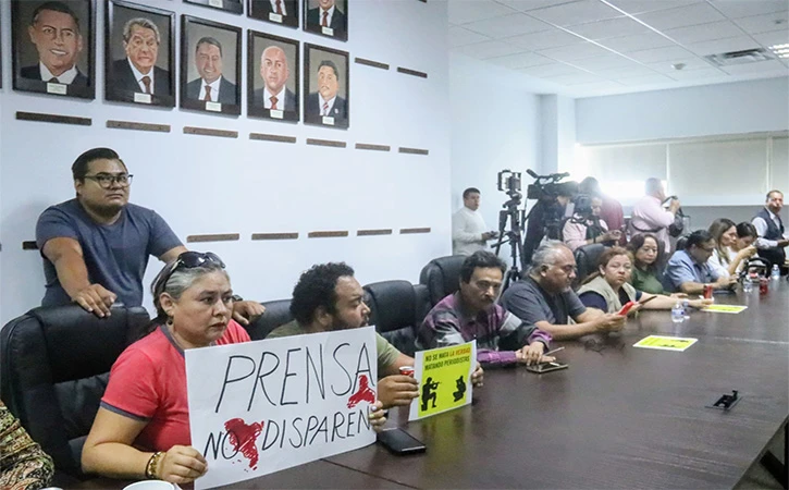 Horas después del hallazgo de los periodistas de Morelos, reporteros estatales, corresponsales nacionales y comunicadores de medios electrónicos protestaron para exigir el esclarecimiento del asesinato de Roberto Carlos Figueroa.