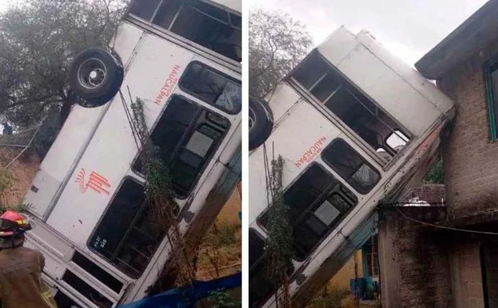 Una unidad de transporte público sorprendió a los vecinos de la colonia San Miguel Xochimanga, en el municipio de Atizapán de Zaragoza, Estado de México, tras impactarse contra una vivienda en la colonia San Miguel, debido a que el vehículo quedó en posición vertical en el patio.
