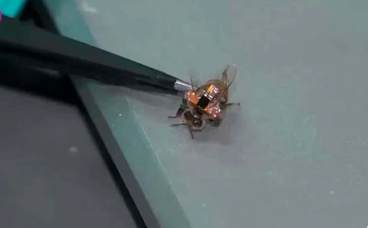 En China, un grupo de científicos creó a la primera abeja ciborg del mundo al conectar abejas reales a un microcontrolador cerebral de 74 miligramos, el dispositivo permite controlar sus lóbulos visuales mediante impulsos eléctricos, con una precisión de vuelo del 90 por ciento en direcciones como izquierda, derecha, adelante y atrás.