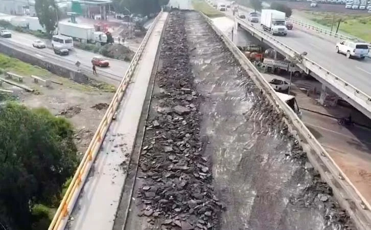 Los trabajos incluyen reencarpetamiento y reforzamiento de trabes en un puente vehicular cercano a la autopista México-Pirámides.