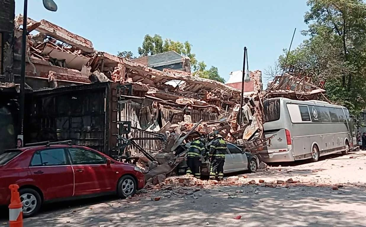 El derrumbarse del inmueble, mismo que se ubicaba en la calle de Atenas en la alcaldía Cuauhtémoc, dejó como saldo dos personas lesionadas y dos vehículos aplastados.