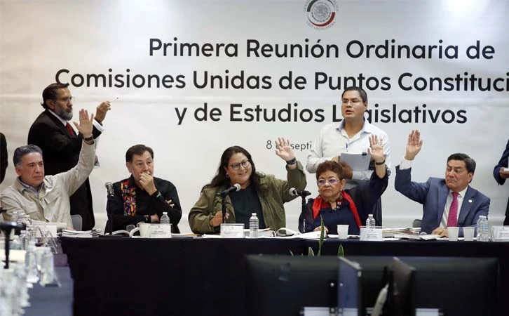 Las Comisiones Unidas de Estudios Legislativos y de Puntos Constitucionales aprobaron, la noche del domingo, en lo general y particular la reforma al Poder Judicial sin modificaciones; el dictamen será presentado el martes 10 de septiembre ante el Pleno para su lectura.