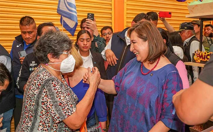 Ante cientos de simpatizantes Xóchitl Gálvez, candidata presidencial de la coalición “Fuerza y Corazón por México”, ingresó al mercado Escuadrón 201 en la alcaldía Iztapalapa, uno de los bastiones de Morena.