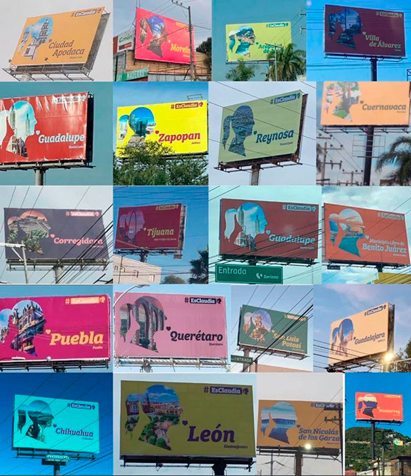 En los últimos días, por todo el país fueron colocados espectaculares con la silueta de perfil de la jefa de Gobierno, e incluye la frase “#EsClaudia” así como el nombre de la ciudad. En redes sociales han evidenciado espectaculares en Puebla, León, Zapopan, Reinosa, Cuernavaca, Querétaro, entre otros.