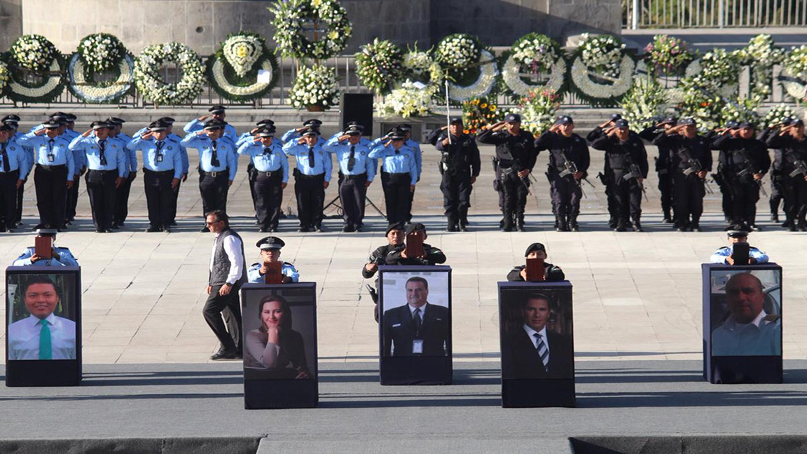 Tras los discursos se llevaron a cabo cuatro guardias de honor de familiares y funcionarios, la primera encabezada por la propia Sánchez Cordero y el exgobernador Antonio Gali Fayad, así como Jesús Rodríguez Almeida, encargado de la gubernatura de Puebla. También se tuvo un minuto de silencio en honor a las víctimas del siniestro.