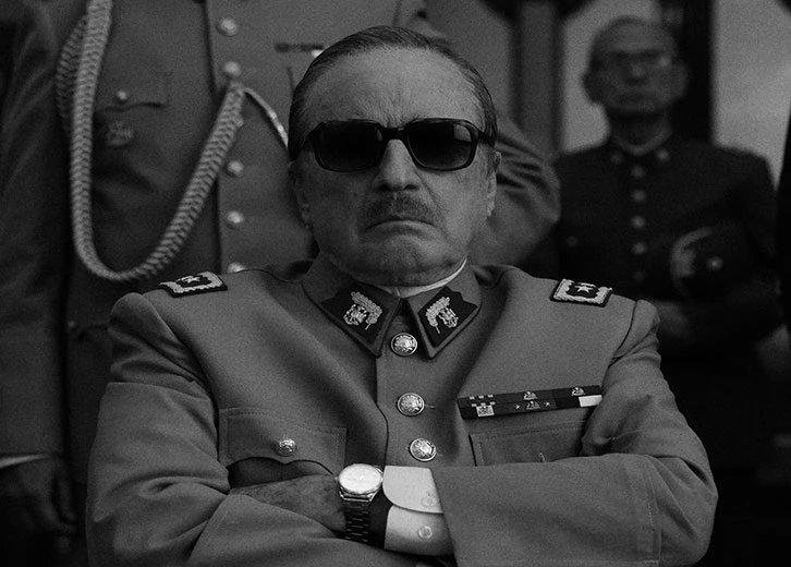 Pinochet es una de las figuras más infames de la historia de Latinoamérica; y en la narrativa de Larrain aparece como un vampiro. Pinochet existía (ya en la época en que falleció) desde hacía 250 años; vivió la época de la Revolución Francesa y convivió con la reyna María Antonieta (paradigma de la corrupción, del degenere mayúsculo, del nepotismo vil, etc.). Pinochet desentierra los restos de María Antonieta y roba su cabeza cercenada por la guillotina. Esta comedia de humor macabro ubica a Pinochet en una finca al sur de Chile. El dictador tiene conflictos familiares; sus hijos anhelan que desaparezca para heredar por fin sus propiedades. En esta trama resulta que para el vampiro es más denigrante ser acusado de corrupto y ladrón que ser acusado de asesino. Pero esta “posición digna” de Pinochet no es una simple casualidad, pues ya analizada, es de entender que es la posición de la burguesía chilena, pues el haber asesinado a los “comunistas”, a los “facinerosos” que querían establecer una sociedad que acabara con los privilegios y la gran desigualdad social, no se puede considerar otra cosa que el haber “salvado a la patria”. Por eso Pinochet es recordado por la derecha mundial como un héroe, como un gran estadista que “salvó a Chile del caos comunista”. Llamarlo ladrón y corrupto mancha esa imagen “heroica”.