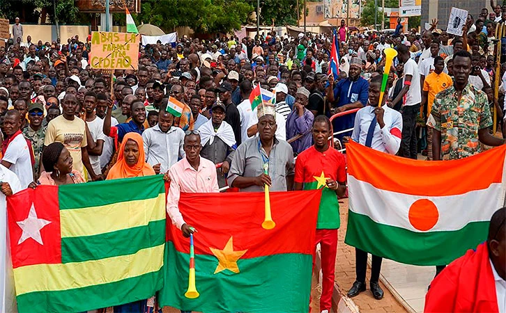 Este es el contexto en el que debe entenderse la retirada de las tropas francesas de Níger el pasado 24 de septiembre. Estamos presenciando la descolonización, el inicio del fin de la tragedia del pueblo africano. Casi medio milenio de opresión, miseria y humillación parecen llegar a su final. Níger no es una excepción. «En los últimos tres años ha habido ocho golpes de Estado en países de África, la mayoría de ellos en países que son ex colonias francesas: en Mali, agosto 2020 y mayo de 2021; en Chad, abril de 2021; en Guinea y Sudán, octubre de 2021; en Burkina Faso, enero de 2022; Níger, julio de 2023 y Gabón, agosto de 2023» (Reblion.org). A pesar de que tanto Francia, como gran parte del bloque occidental, continúa tratando a las nuevas autoridades como “golpistas”, el respaldo popular en cada una de estas naciones otorga más legitimidad que el reconocimiento de las potencias en decadencia. “Nuestro pueblo – señaló el pasado 13 de agosto en Moscú el coronel Sadio Camara, ministro de Defensa de Mali– ha decidido volver a tomar las riendas de su destino y levantar su autonomía con socios más de fiar” (Le Monde Diplomatique).