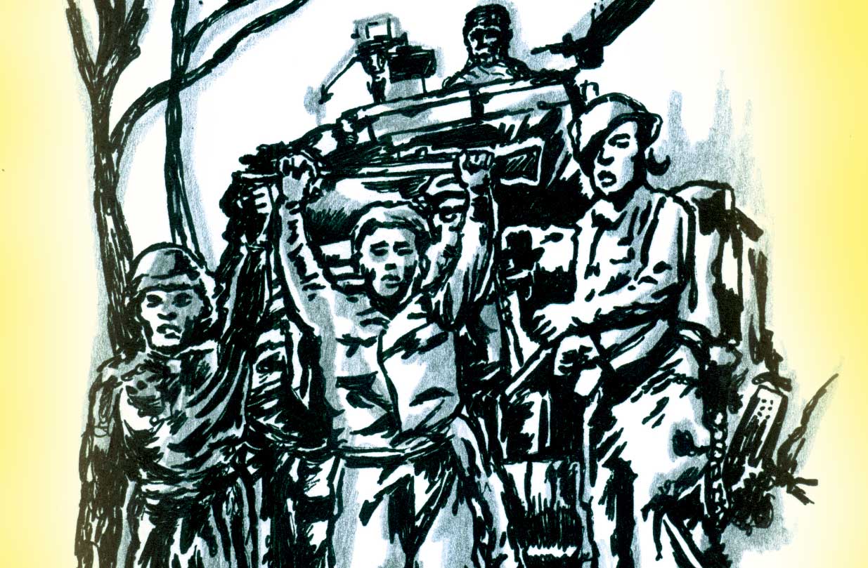 En esta escena, Aquiles –el piloto gringo de la Guerra de Vietnam– persigue a La F con intención de violarla y matarla, pero cuando un ágil giro defensivo de la víctima provoca su caída en tierra, el genocida se levanta sorprendido, aterrado o, quizás, aún afectado por el consumo de drogas que, al igual que muchos de sus compañeros, debía consumir para no darse cuenta de sus crímenes contra la población civil vietnamita.