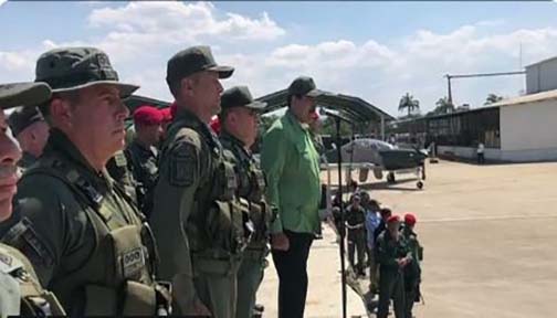 Nicolás Maduro respondió con el despliegue de tropas por todo su país, 4.5 millones de milicianos, para combatir amenazas extranjeras.