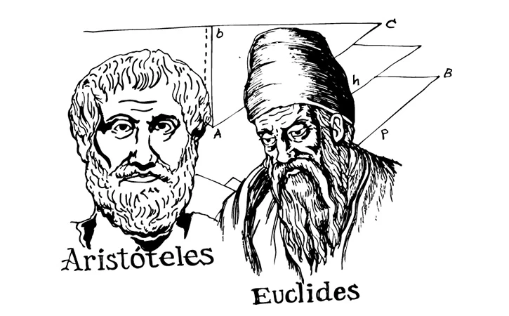 La sistematización de esta idea de Aristóteles, se plasmó en los Elementos, de Euclides, escritos en 300 a.C. En esta obra de 13 volúmenes se establecen nociones comunes y postulados, también una colección de definiciones (que intentaban precisar conceptos iniciales) y 465 proposiciones, con sus respectivas demostraciones lógicas.