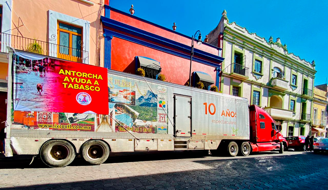 Un total de 80 toneladas de víveres y ropa logró juntar el Movimiento Antorchista de Puebla para enviar a los damnificados de Tabasco, informó esta mañana el dirigente estatal Juan Manuel Celis Aguirre al dar el banderazo de salida de un tráiles, dos tórtones y una camioneta con la ayuda.