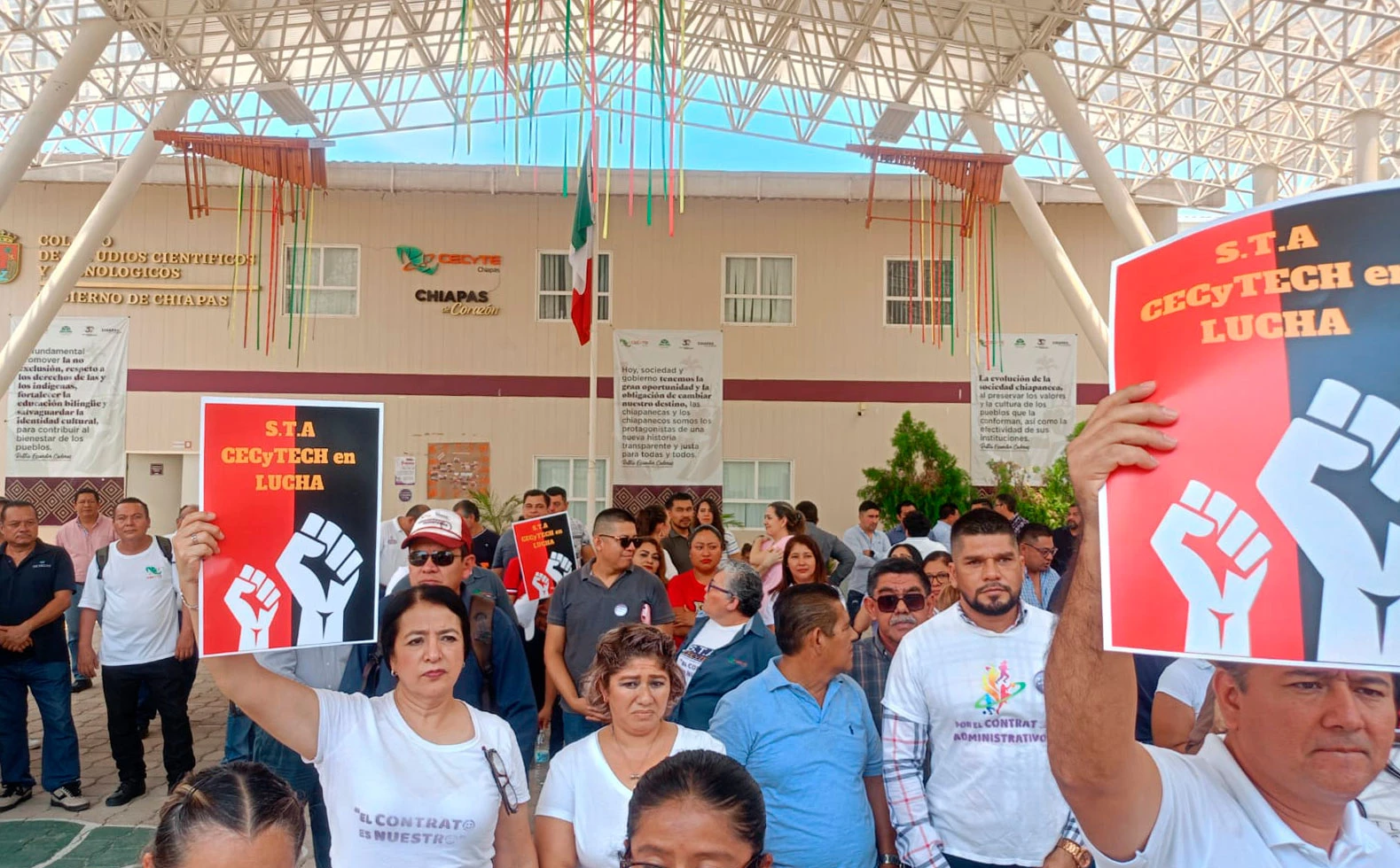 El Sindicato de Trabajadores Administrativos (STA) del Colegio de Estudios Científicos y Tecnológico en el Estado de Chiapas (Cecytech), estalló en huelga este viernes, tras no firmarse el contrato colectivo en tiempo y forma que según lo establece la ley.