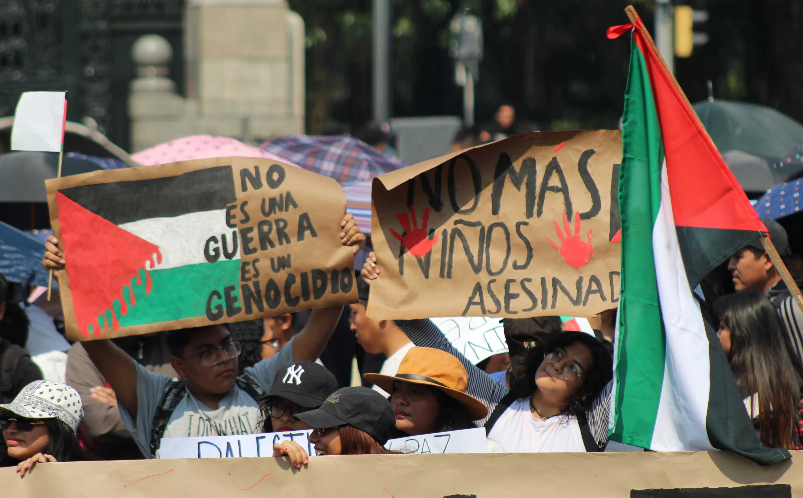 Estudiantes y profesores de la Universidad Nacional Autónoma de México (UNAM); así como de la Federación Nacional de Estudiantes Revolucionarios Rafael Ramírez (FNERRR) se manifestaron para denunciar el genocidio que el Estado de Israel comete contra el pueblo palestino, mismo que ha provocado más de 40 mil muertes, 70 por ciento de ellas corresponde a niños y mujeres; a estos se suman 10 mil pobladores más que permanecen sepultados bajo los escombros de los ataques perpetrados en la Franja de Gaza.