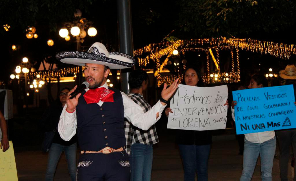 Los estudiantes acusan que sus compañeras “fueron jaloneadas, manoseadas y ultrajadas” por policías vestidos de civiles, a quienes tienen “identificados y tenemos material gráfico de los responsables”, sentenció uno de ellos durante el mitin frente al Palacio Municipal.