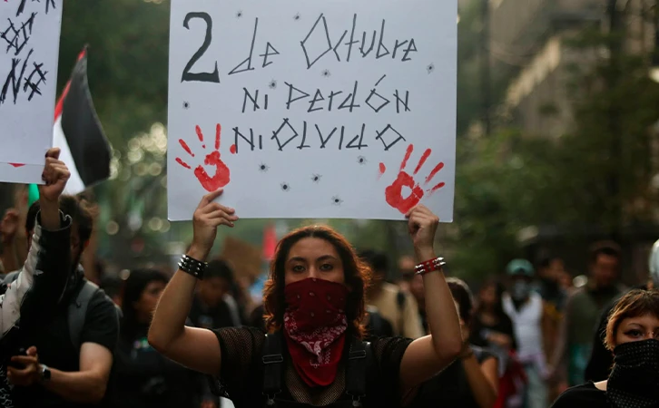 Estudiantes mexicanos marcharon este jueves para conmemorar el 57 aniversario del Movimiento Estudiantil de 1968, que fue reprimido y masacrado por el gobierno del expresidente Gustavo Díaz Ordaz.