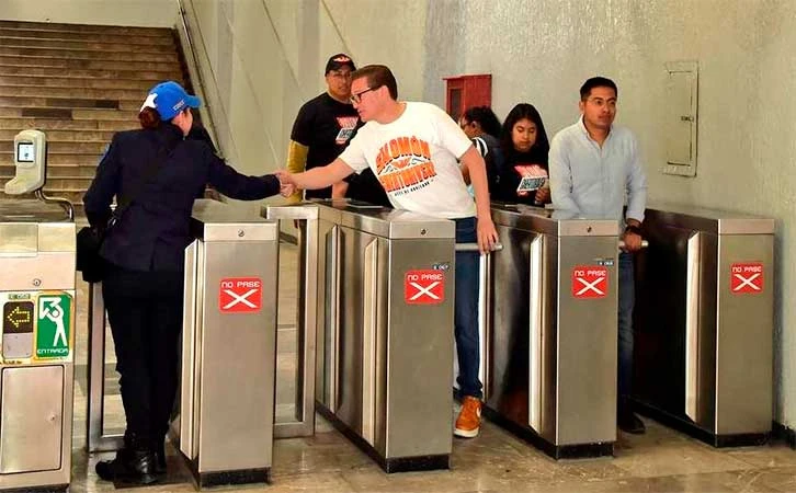 El candidato por el Partido Movimiento Ciudadano (MC) a la jefatura de Gobierno, Salomón Chertorivski, recorrió las líneas 4 y 2 del Metro, donde también realizó volanteo con sus principales propuestas.