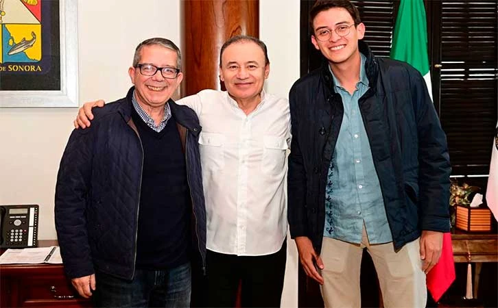 Jenaro Villamil, titular del Sistema Público de Radiodifusión del Estado Mexicano (izquierda); Alfonso Durazo, Gobernador de Sonora (centro), y Carlos Brito Lavalle, Director de Canal Once (derecha). X de @AlfonsoDurazo