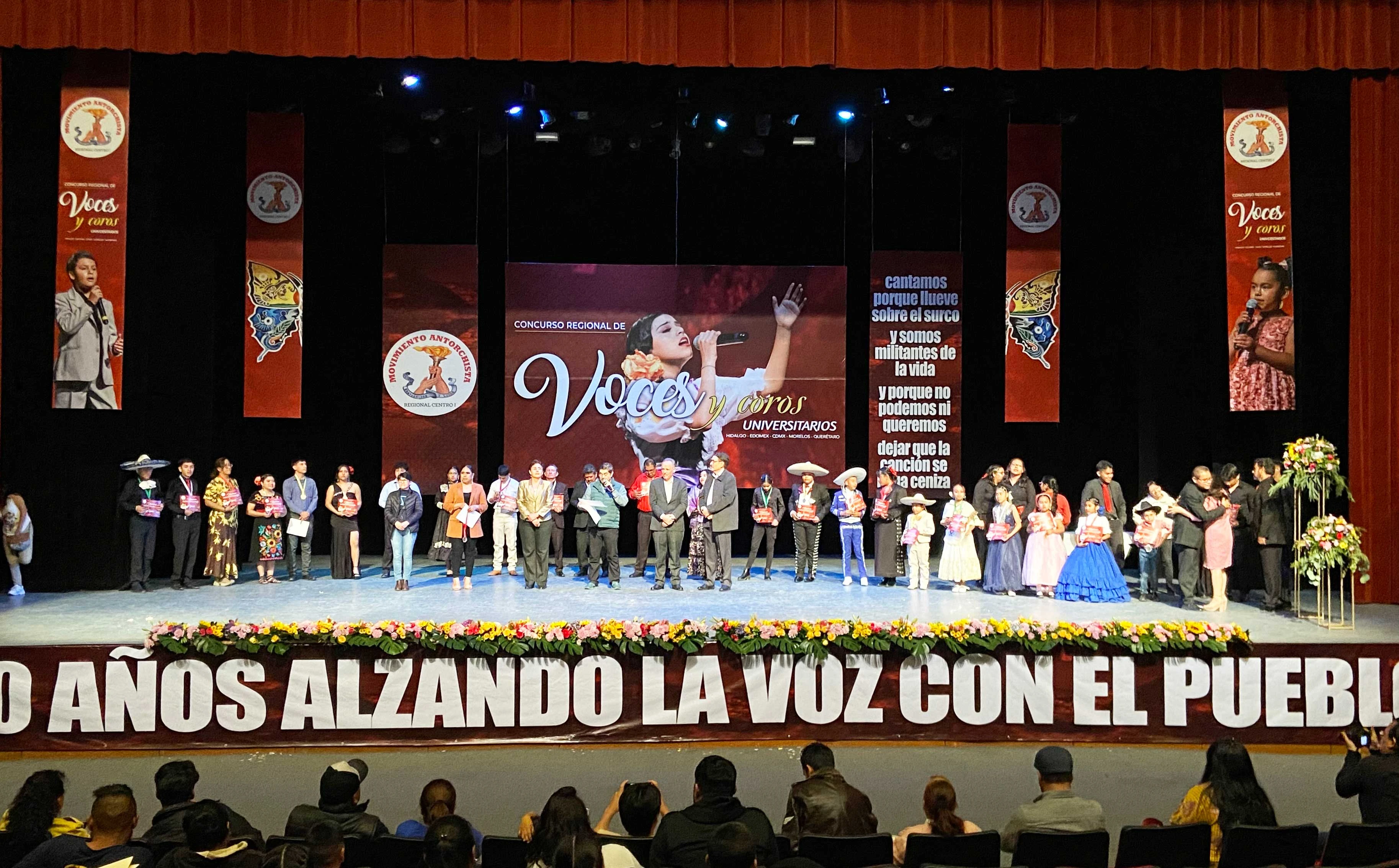“El arte en Antorcha es esencial y tiene doble valor: la forma en que el hombre conoce su realidad y luego la expresa en formas bellas; y el arte como instrumento humanizador, por excelencia, del pueblo”, señaló Abel Pérez Zamorano, Doctor en Economía e Integrante del Comité Ejecutivo del Movimiento Antorchista Nacional, durante el acto de inauguración del “Concurso Regional de Voces y Coros”, que se realizó en el Teatro-Auditorio “Gota de Plata”, de Pachuca, Hidalgo.