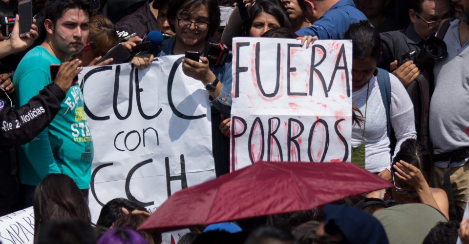 El 3 de septiembre estudiantes del CCH Azcapotzalco que se manifestaban de manera pacífica fueran agredidos por 'grupos porriles' en las inmediaciones de la Rectoría de la UNAM, que dejó cuatro heridosdos de ellos de graverdad.