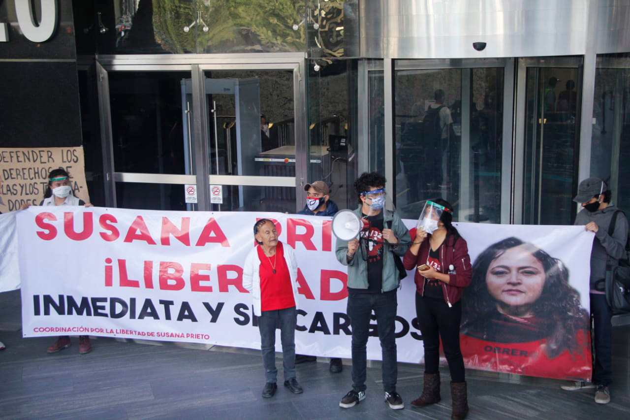 Este día, en la ciudad de México, diversas organizaciones civiles realizaron un mitin de protesta en las inmediaciones de la Fiscalía General de la República para exigir la libertad de Susana Prieto Terrazas, detenida en Matamoros Tamaulipas por defender los derechos de trabajadores.