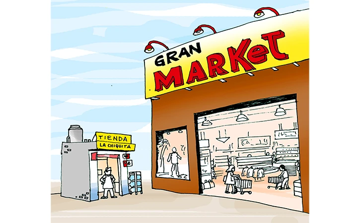 Esta situación exhibe la hipocresía del nacionalismo oligárquico local, discurso mentiroso del que también se vale para infundir sentimientos patrióticos en la gente y establecer normas para impedir que otros consorcios le arrebaten el privilegio de explotar y saquear. Tal estatus explica, asimismo, por qué nuestros países están llenos de “changarros”, puestos callejeros y mercados sobre ruedas en donde se comercian productos industriales que no se venden en las grandes tiendas.