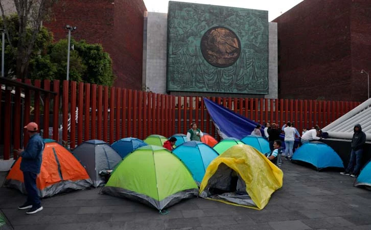 Este jueves 27 de febrero, integrantes de la Sección 22 de la Coordinadora Nacional de Trabajadores de la Educación (CNTE) instalaron un campamento en la zona aledaña a la Cámara de Diputados, donde permanecerán hasta el día de mañana, viernes 28.