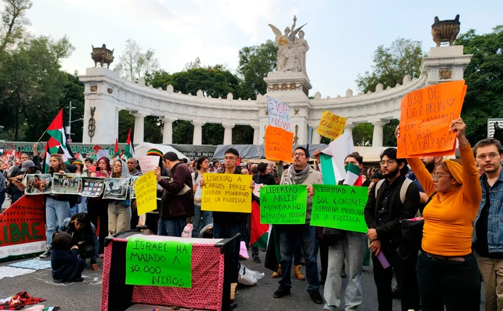 Entre consignas, la gran multitud compuesta por activistas, estudiantes y comunidad LGBT+ llamó a paralizar universidades y principales calles de CDMX en los próximos días para visibilizar “la lucha más justa y más humana” a favor del pueblo palestino.