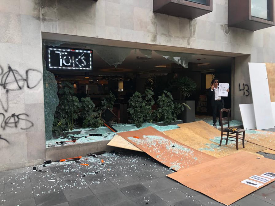 También dañaron bancos, restaurantes, hoteles y demás comercios ubicados en avenida Juárez. Incluso saquearon una librería Gandhi, que además sufrió quemas.