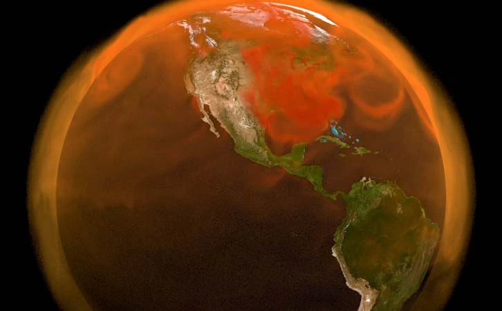 Satélites de la NASA aptaron remolinos de dióxido de carbono en la atmósfera.