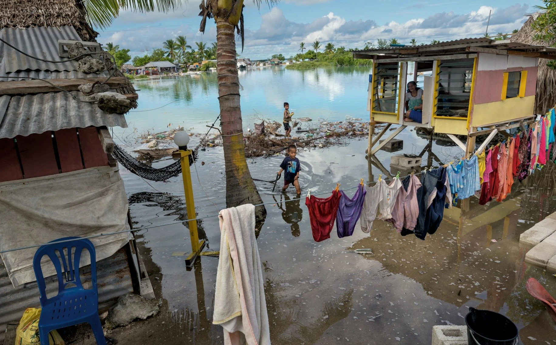 De los países en peligro, Kiribati está ubicado en el Pacífico central, actualmente cuenta con una población de 120 mil personas. Está compuesto por 33 atolones de coral que enfrentan inundaciones constantes, lo que daña cultivos, viviendas e infraestructuras. La intrusión de agua salada ha reducido las reservas de agua dulce, lo que afecta la seguridad alimentaria de sus habitantes.