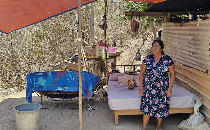 En La Anona, una ranchería escondida entre cerros, ríos y caminos de tierra de San Pedro Pochutla, el calor no perdona. Desde temprano, el Sol cae enérgico sobre los techos improvisados; “hierve” la tierra y se mete en los huesos. No hay sombra que alcance, y menos si la casa es una lona. Teresa Cruz Ruiz lo sabe bien: vive bajo un pedazo de plástico sostenido por varas, sin paredes ni láminas o más protección que su propia dignidad.