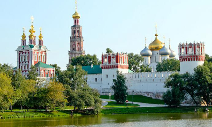 El Convento de Novodievichi, se traduce literalmente como “convento de las nuevas doncellas” y el complejo fue concluido en 1524 por el gran príncipe Basilio III. Fue consagrado al ícono milagroso de la Virgen de Smolénsk, por la reconquista de la ciudad de Smolénsk a los lituanos y anexada al entonces imperio ruso. En la época zarista fue el monasterio más rico y privilegiado de toda Rusia, pues aceptaba solamente a mujeres de linaje noble o clanes privilegiados de boyardos, que donaban perlas, oro, joyas y alhajas. Dentro del complejo existen dos iglesias principales: la catedral de Nuestra Señora de Smolénsk y la Iglesia de la Intersección; el primero es el edificio más antiguo, su campanario pertenece al estilo barroco moscovita y tiene un cierto parecido con la catedral de la Dormición del Kremlin. A diferencia de otros monasterios de la capital, ha permanecido casi intacto desde el siglo XVII.