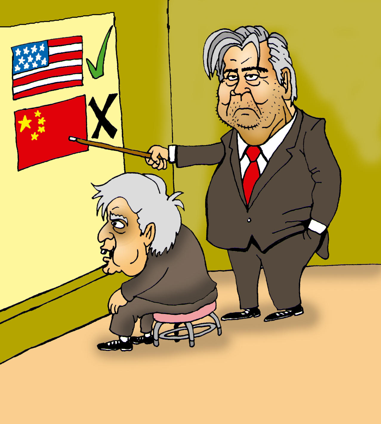 El silencio de AMLO y el miedo a responder con la dignidad que una nación como la nuestra requiere, no es casual. El nuevo tratado comercial deja a México atado de manos frente a los intereses imperialistas de EE. UU., con todo el significado que esta palabra implica. En su capítulo 32, el TMEC exige que ninguno de sus miembros se “integre comercialmente con China”, lo que garantizaría a nuestro vecino del norte el control absoluto de la economía nacional y la seguridad de que su competidor más cercano tiene las manos fuera de su traspatio al sur del río Bravo. El papel del Presidente en la ratificación de este acuerdo fue, apenas hace unas semanas, recordado y aplaudido por el ultraderechista y exjefe de asesores de Donald Trump, Steve Bannon, quien dijo al respecto: “No hubiéramos logrado (mantener el acuerdo comercial del NAFTA) si no hubiese estado el nuevo Presidente populista […] La clave de ese acuerdo era asegurarse que China no pudiese entrar en el sistema a través de México, y creo que (Andrés Manuel) López Obrador fue esencial para esto”.