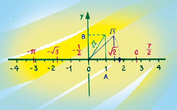 Podemos preguntarnos ¿qué punto le corresponde a la longitud de la hipotenusa de un triángulo rectángulo de catetos que miden la unidad? Es decir, será posible ubicar lo que hoy llamamos en una recta geométrica de manera exacta, ¿quién puede hacerlo? Dudo que exista un ser humano que pueda ubicar el punto exacto que le corresponde. Se establece una ruptura cognitiva, que hasta el día de hoy persiste, debido a las limitaciones de la mente humana. Este problema fue resuelto desde el punto de vista matemático por Richard Dedekind en 1878, desde este momento fue posible conectar biyectivamente los puntos de la recta geométrica y los números que por primera vez incluían a los irracionales , , es decir, estos hoyos que poseía la recta geométrica fueron cubiertos por estos nuevos objetos numéricos, técnicamente se le llama completación de la recta real. Pasó a ser la recta geométrica un objeto continuo, identificable cada uno de sus puntos con un número real, dando un fundamento riguroso al concepto de límite o punto de acumulación en la recta y así fundamentar el naciente análisis matemático.