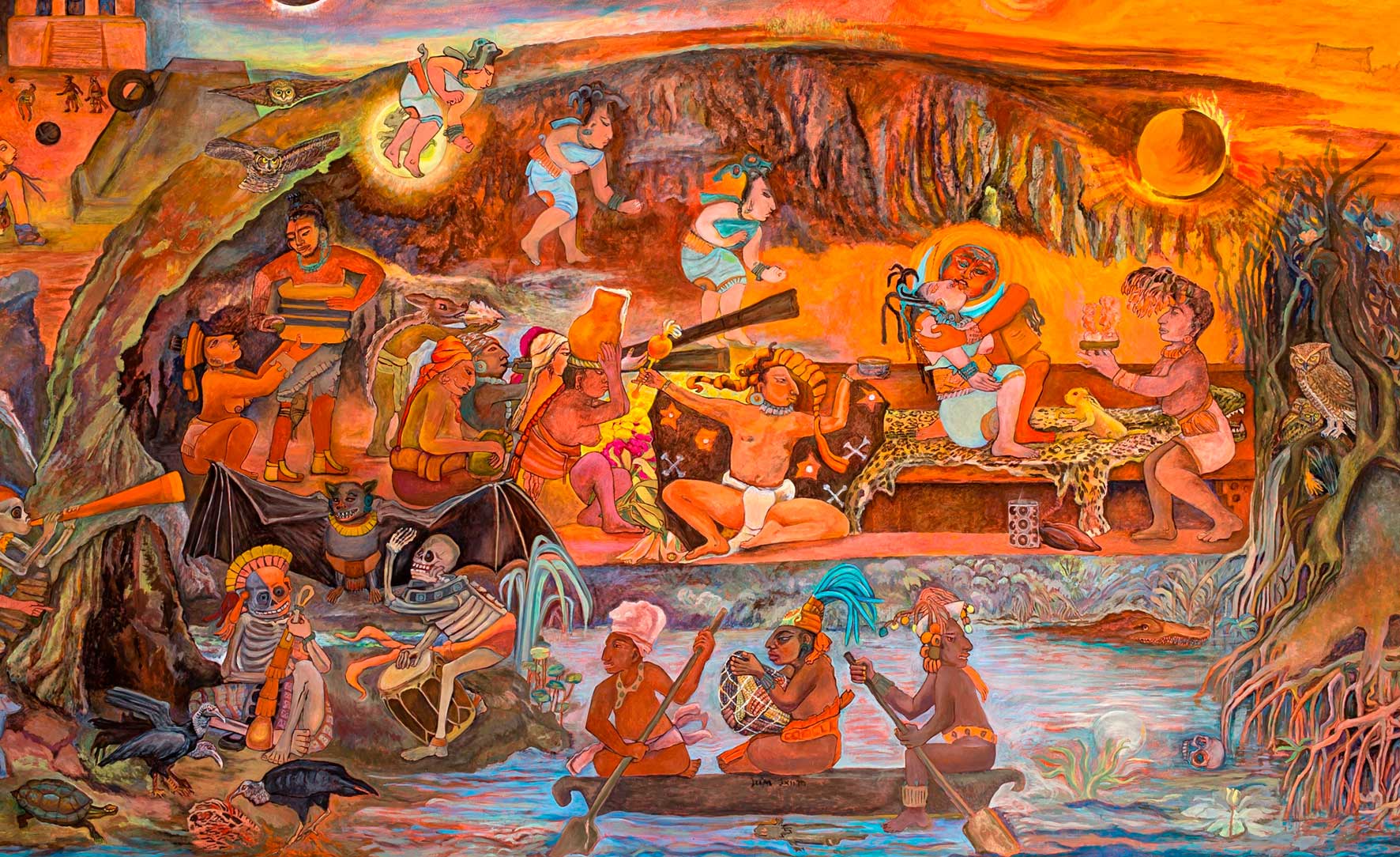 Rina Lazo fue una de las mujeres del muralismo. Aunque ella no nació en México, sino en Guatemala, casi toda su carrera artística la hizo aquí. Desde muy joven ganó una beca para estudiar en México y, tras algunos años de estudio y preparación, se convirtió en la ayudante principal de Diego Rivera. De ella, Rivera decía que era su mejor alumna, y no fue para menos. Su producción artística abarca obras de caballete, pero también de gran formato, como el mural; los temas son variados, desde naturalezas muertas hasta las raíces de los pueblos mesoamericanos.