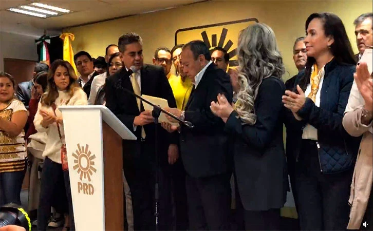Acompañado por dos de los aspirantes del PRI a la jefatura de gobierno de la Ciudad de México, Adrián Rubalcava y Xavier González Zirión, así como la alcaldesa de Tlalpan, Alfa González, Espinosa Cházaro entregó su documentación al presidente nacional del PRD, Jesús Zambrano.