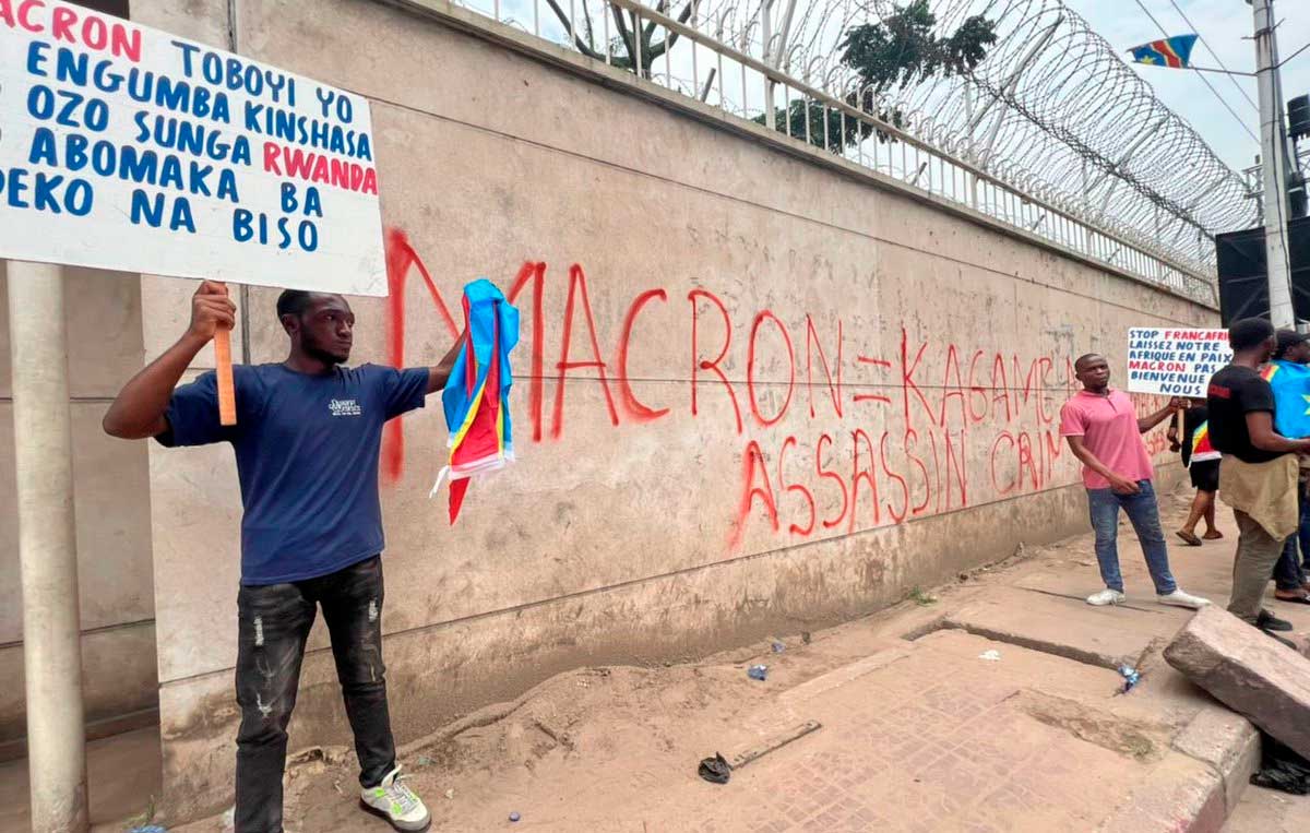 "Macron es un asesino”, protestaban los manifestantes también con escritos en los muros de la Embajada francesa en la ciudad congoleña de Kinshasa. Además, desplegaron pancartas en las que se leía "Macron es el padrino de la balcanización de la RDC", "Los congoleños dicen no a la política francesa" y "Macron es un invitado no deseado en la RDC".