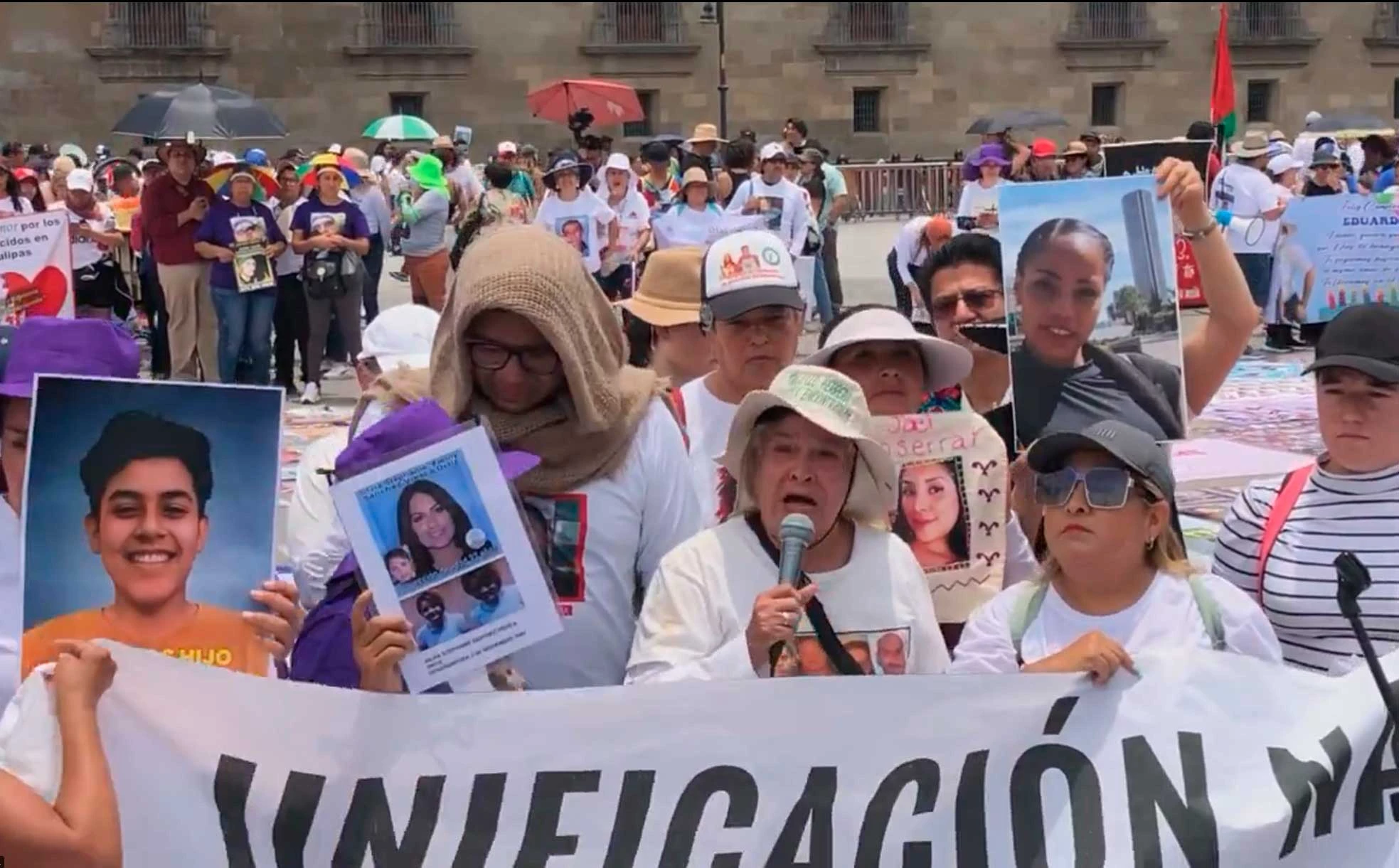 En el marco del Día de la Madre, las mujeres marcharon desde el Monumento a la Madre, ubicado en la avenida Paseo de la Reforma, hacia el Zócalo capitalino, mientras cargaban pancartas con las fotografías y las fichas de búsqueda de sus desaparecidos. Avanzaron hacia el Zócalo pero nadie las recibió una vez que llegaron a Palacio Nacional.