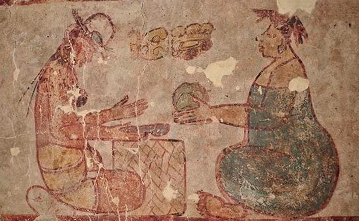 Mural pintado hace más de 2 mil 500 años, contiene el primer registro documentado de sal como mercancía para los antiguos mayas en un mercado.