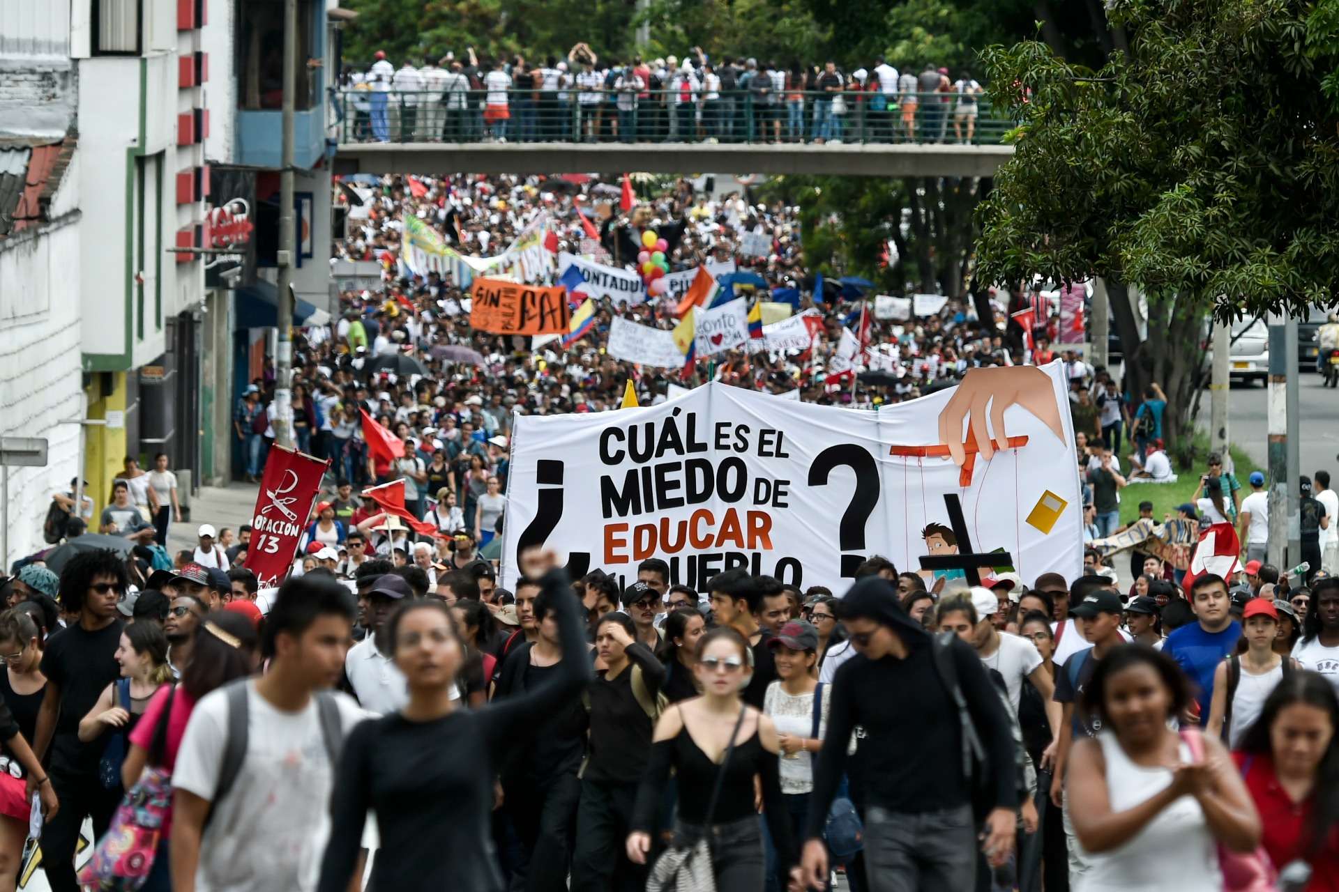 Miles de estudiantes colombianos salieron a protestar en las principales ciudades del país, debido a un déficit financiero que sufrió el sistema educativo por la falta de compromiso del presidente Iván Duque.