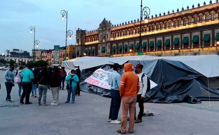 Los normalistas instalaron una carpa improvisada con bolsas de nylon frente a Palacio Nacional y afirmaron que, tras 10 días en la Ciudad de México, ninguna autoridad federal ha dado respuesta a su demanda.