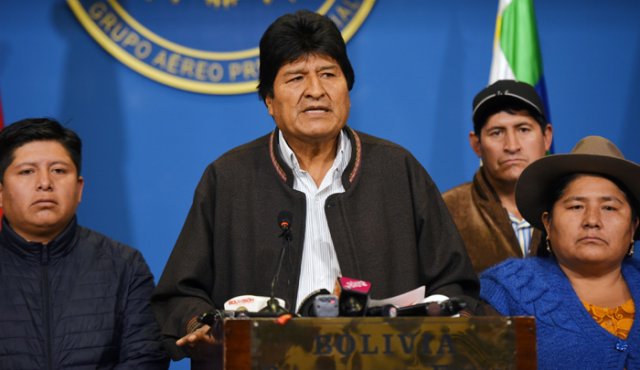Ante esto, Evo Morales convocó a nuevas elecciones; sin embargo, horas después, presionado por las Fuerzas Armadas y la Policía de Bolivia, Morales anunció su dimisión, junto con el vicepresidente, Álvaro García Linera.