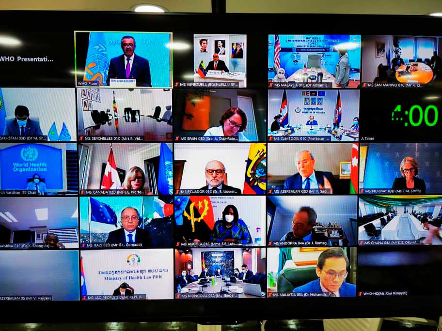 La Asamblea Mundial de la salud es el máximo órgano de decisión de la OMS y cada mayo se reúne en Ginebra para determinar las políticas organizativas y supervisar las financieras y adoptar el programa del presupuesto previsto. A causa de la pandemia, esta es la segunda ocasión que se celebra de manera virtual. (Telesur).