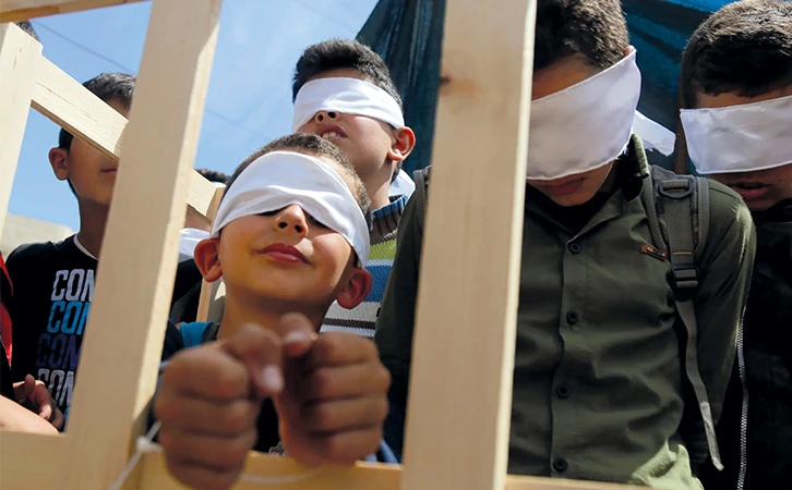 Las fuerzas de ocupación de Israel los secuestran y castigan regularmente. Sus incursiones nocturnas en barrios y carreteras son verdaderas cacerías contra niños y adolescentes de entre 11 y 17 años quienes, maniatados y con los ojos cubiertos, son arrojados al piso de vehículos militares y llevados a centros de detención donde los soldados los someten a abusos físicos y verbales. No se notifica a ningún familiar de su arrest, ni se les informa de sus derechos. Traumatizados por esa violenta redada, los chicos pueden desarrollar enfermedades físicas y psicológicas.