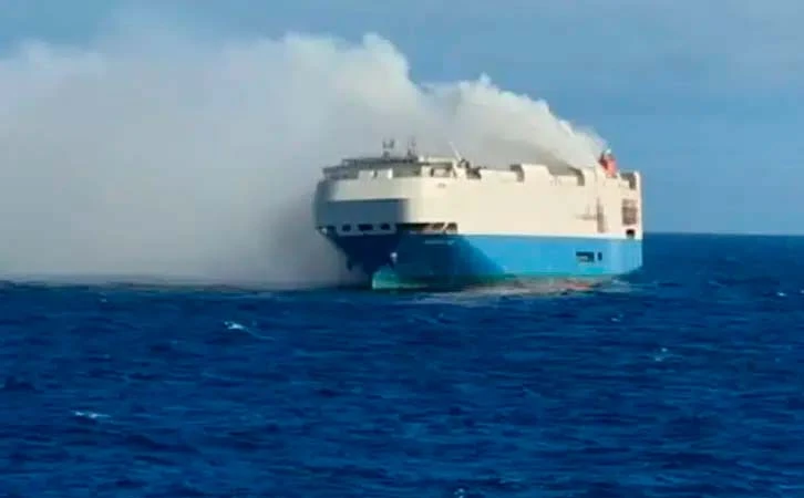 La nave transportaba aproximadamente tres mil vehículos, de los cuales, por lo menos 800 correspondían a unidades eléctricas.