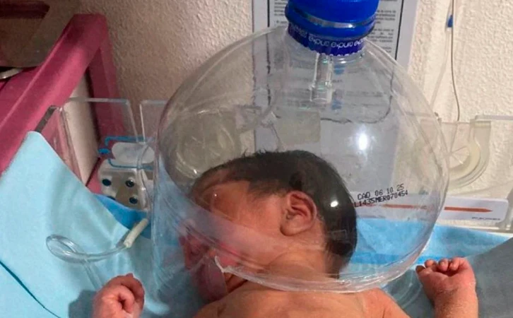 La fotografía del bebé que se encontraba en una camilla del hospital con una botella de plástico colocada en su cabeza para poder respirar, fue difundida y viralizada en redes sociales, lo que causó indignación entre la población.