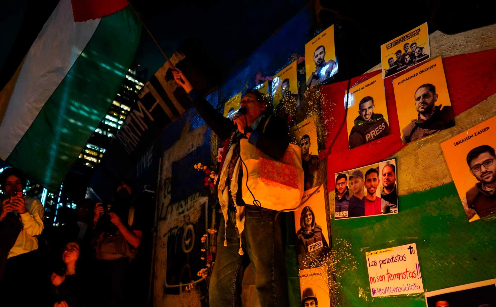 Con una velada, periodistas de México rindieron un homenaje la noche del martes a seis corresponsales de Al Jazeera asesinados por Israel en la Franja de Gaza.